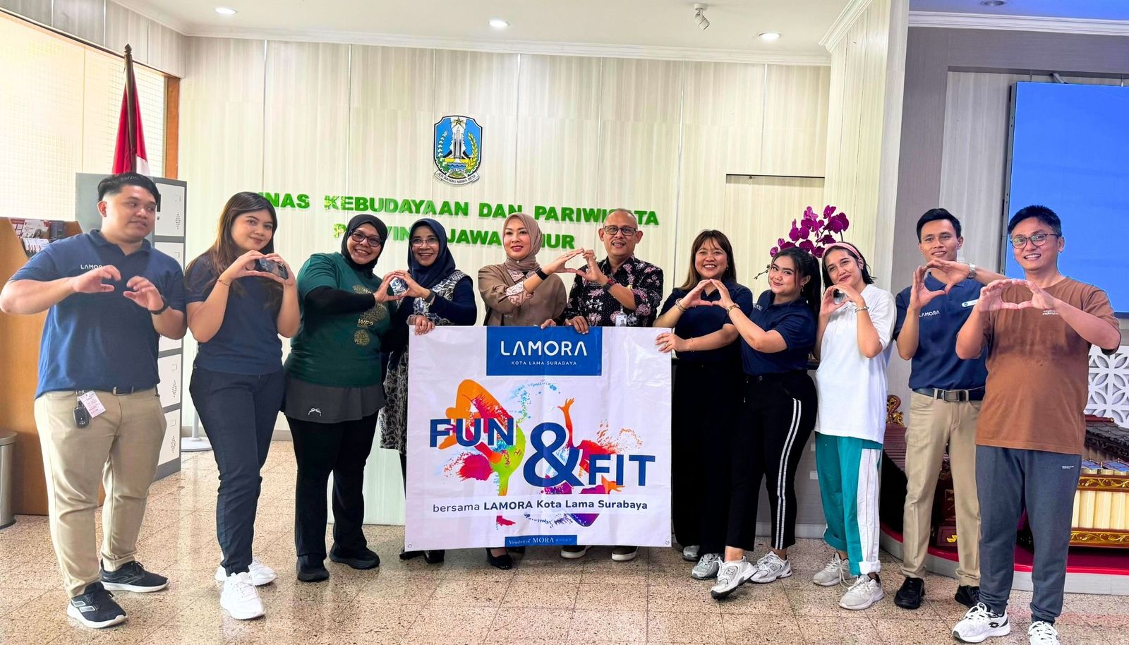 Surabaya, gantaranews.id – 6 Februari 2026. LAMORA Kota Lama Surabaya kembali menunjukkan komitmennya dalam mendukung gaya hidup sehat sekaligus mempererat sinergi dengan pemangku kepentingan pariwisata melalui kegiatan Aerobik Bersama dengan tema FUN & FIT yang dilaksanakan bersama staf Dinas Kebudayaan dan Pariwisata Provinsi Jawa Timur.